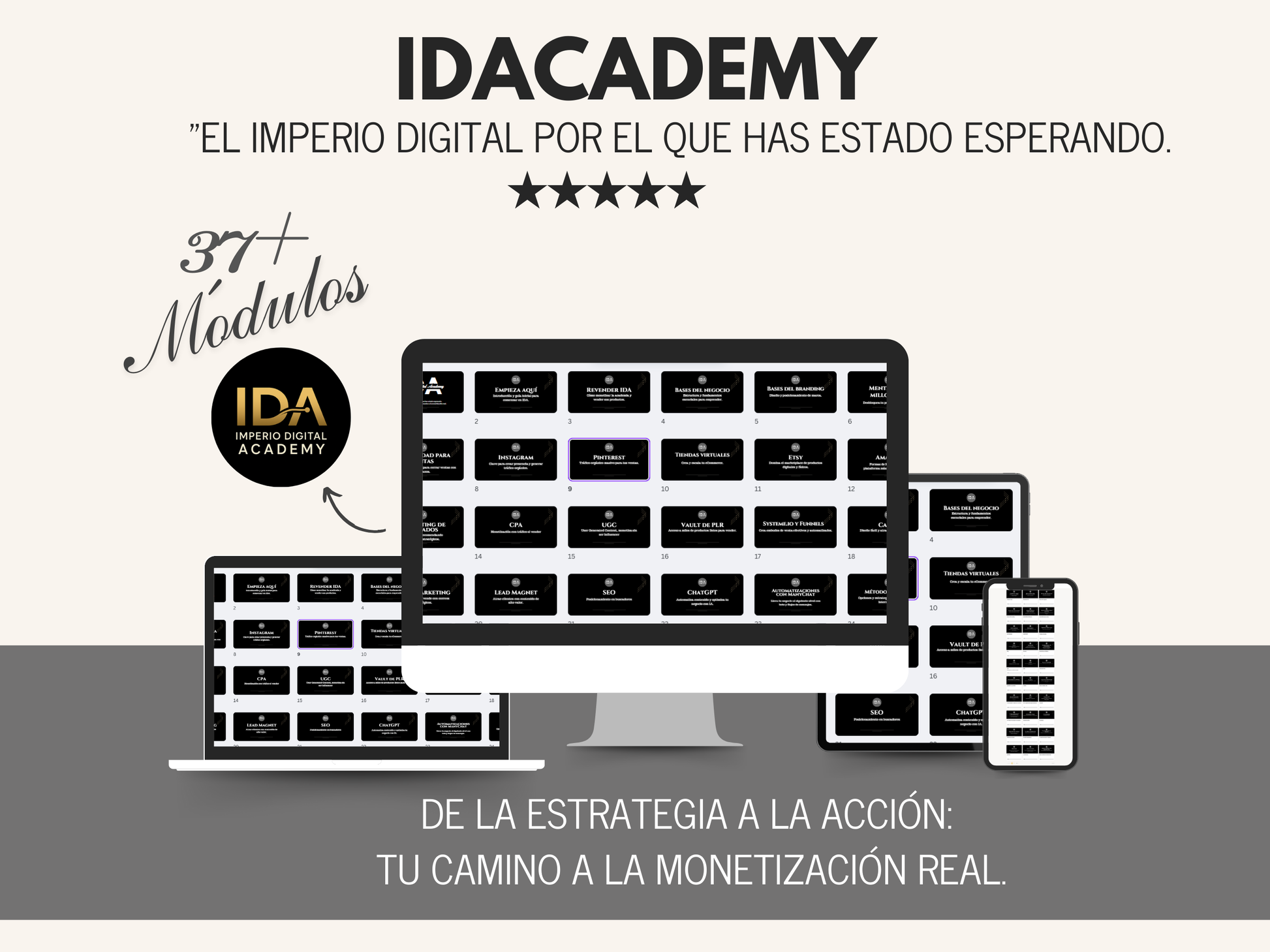 IDA - Imperio Digital Academy es la plataforma diseñada para emprendedores que desean crear, escalar y monetizar sus negocios en línea con estrategias comprobadas y herramientas de alto impacto. Aquí no solo aprendes, aquí implementas y generas resultados reales.